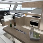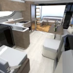 À l’avant, un second salon pour 8 personnes vient compléter la disposition du pont, créant une séquence architecturale et spatiale qui fait de l’Aventura 38 SEDAN un bateau remarquablement convivial et accueillant.