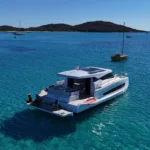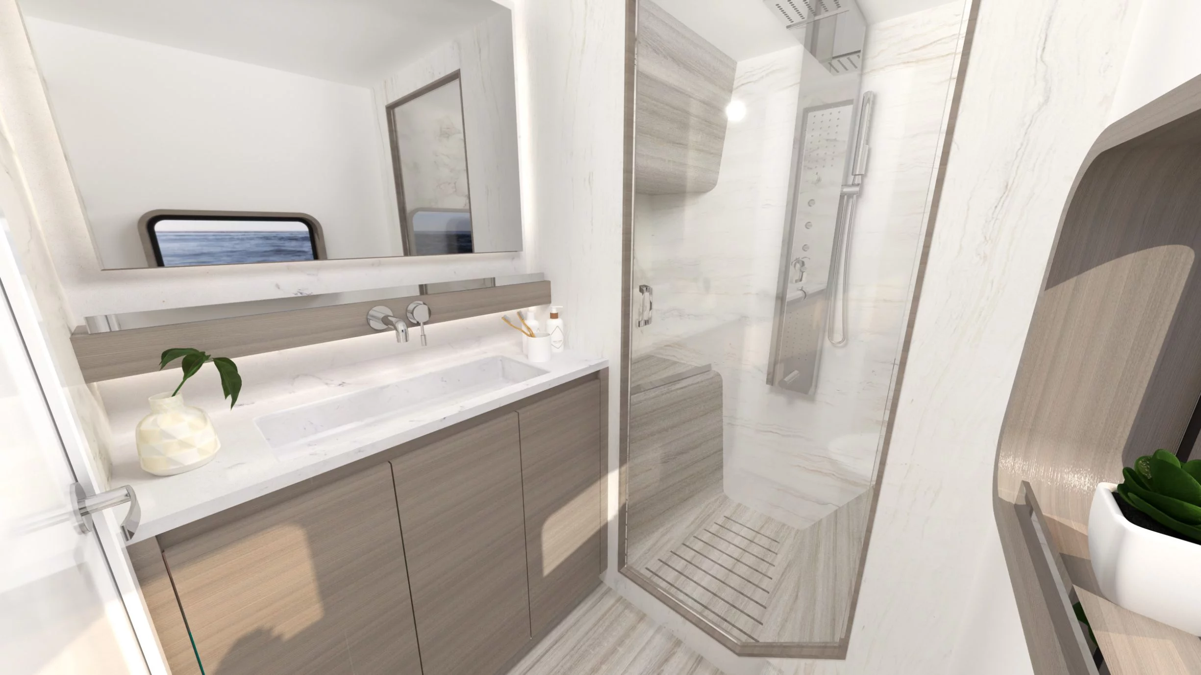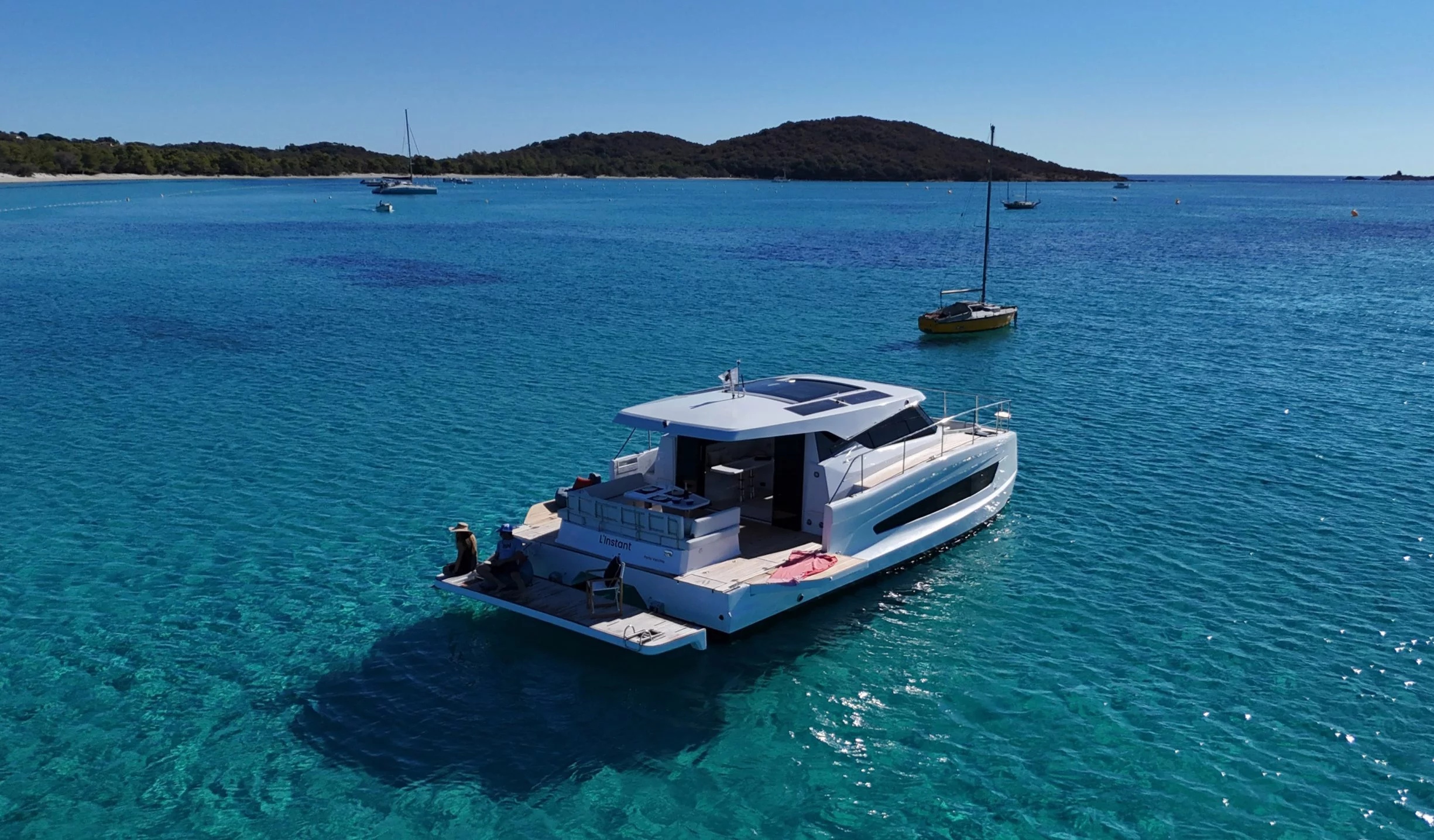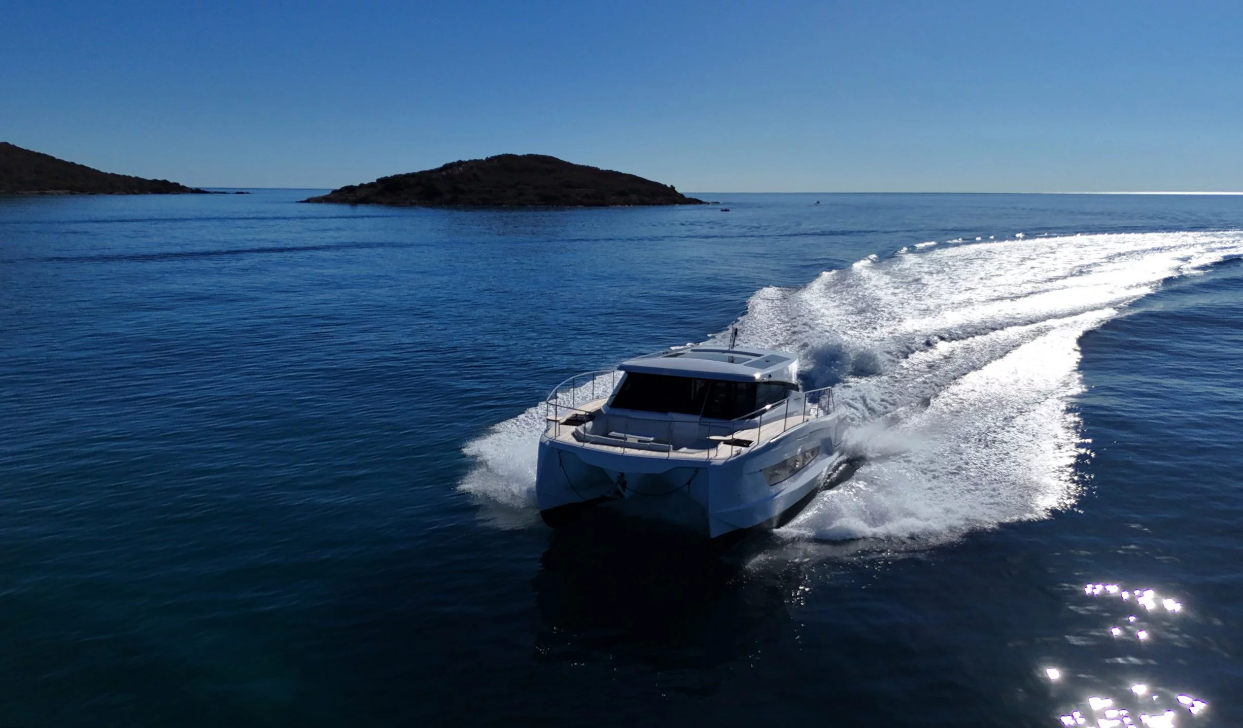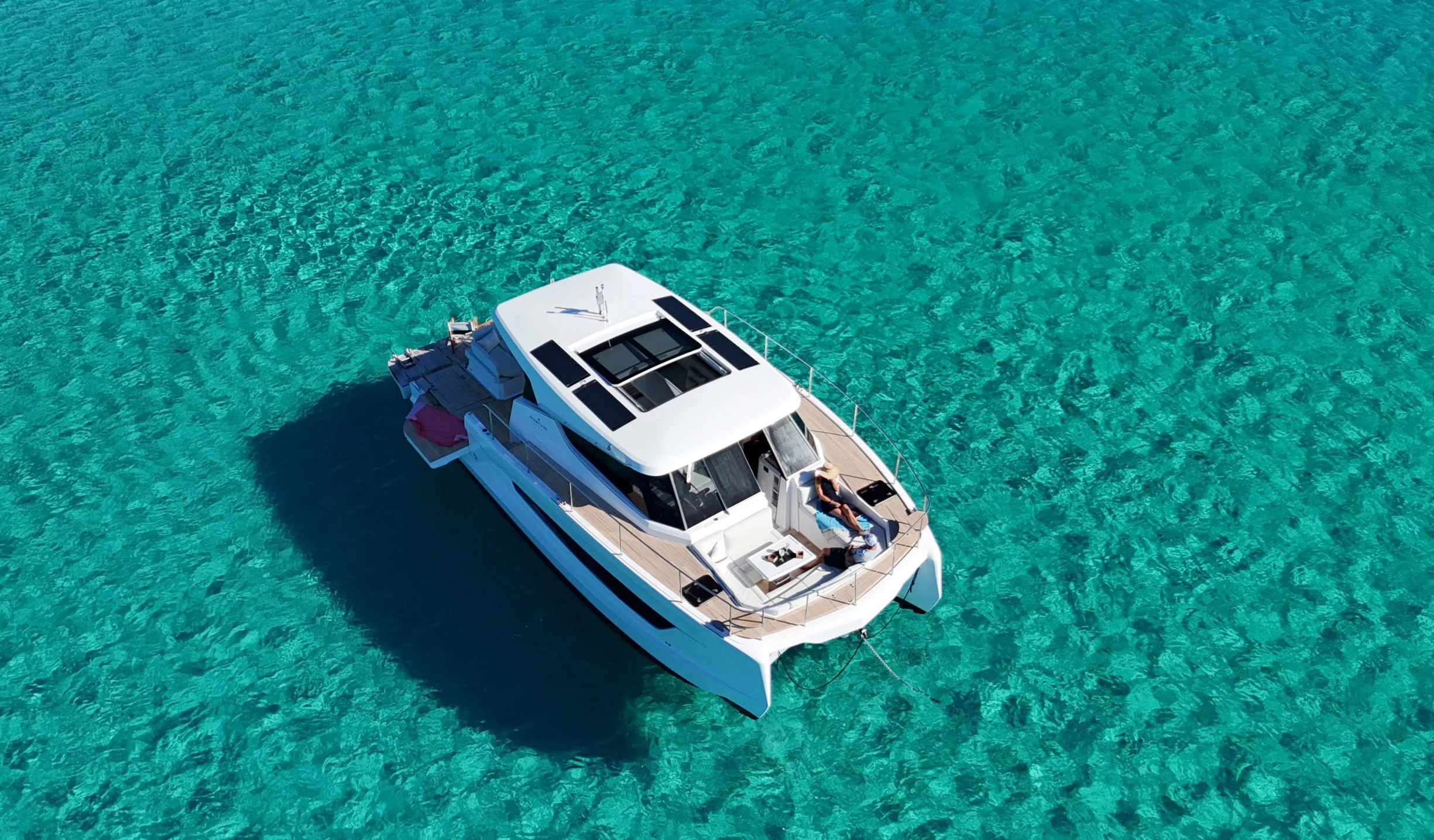 La cabine propriétaire occupe tout le flotteur tribord, offrant une salle de bain privative et une douche séparée. À bâbord, deux confortables cabines accueillent les invités, accompagnées d’une salle de bain.