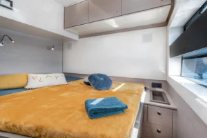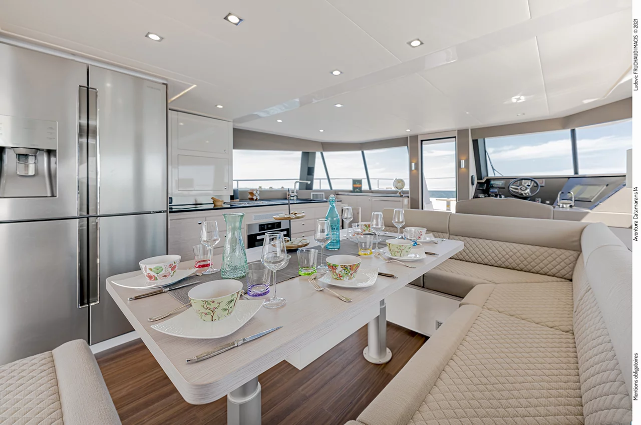 Nous sommes fiers de vous dévoiler l’Aventura 56 MY, un modèle qui incarne l’évolution des techniques et du design propres à notre chantier. Ce nouveau catamaran à moteur conserve les éléments qui ont fait la renommée et l’originalité de la marque : un design distinctif, une croisière sécurisée, des volumes de vie généreux et des aménagements ingénieux.